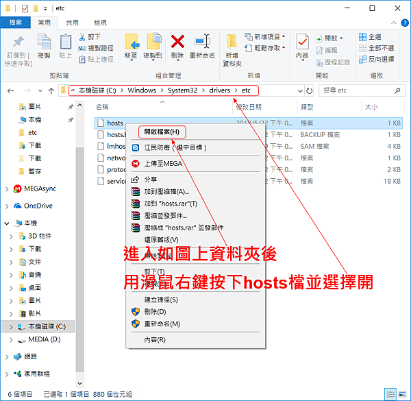 1.打開檔案總管進入下圖中資料夾並開啟hosts檔案
