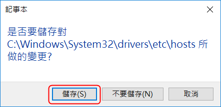 請注意,hosts檔案並無副檔名,儲存時請千萬記得檢查!